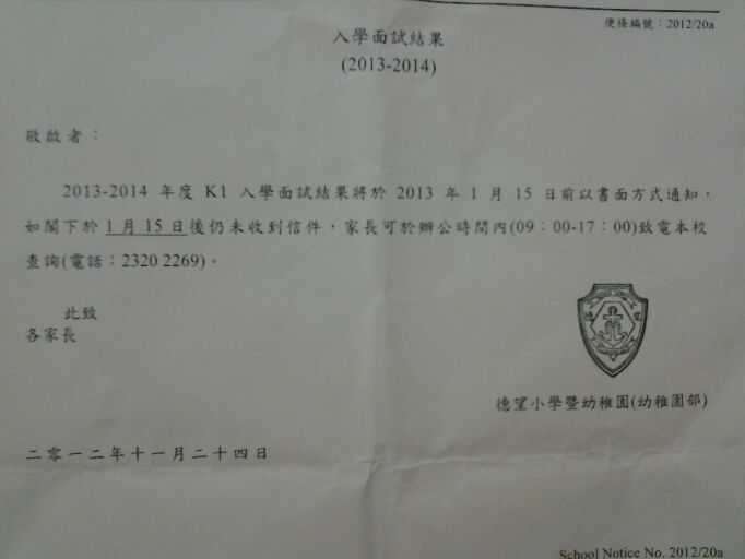 如果我無記錯張紙係寫如果在15日前仍未收到通知,可向學校查詢,如果是這樣的話, 學校為免好多家長致電去問結 ...