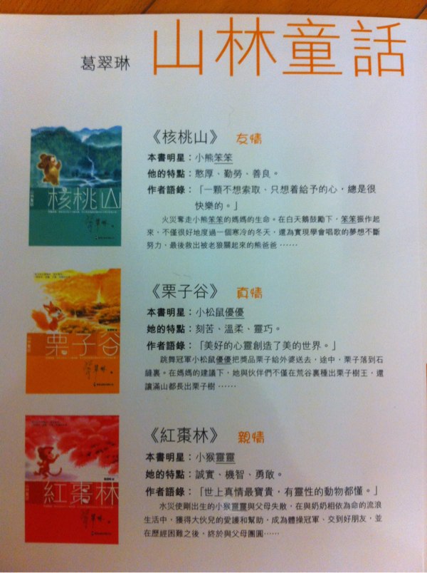 我只選台灣出版的書,或者內地近代的兒童文學(繁體版),我看過一些成語書,也是台灣的比較好。香港出版的兒童圖書的文字,總好像欠缺了些什麼!