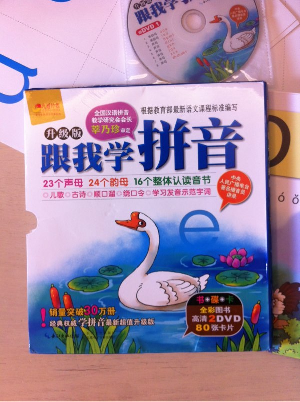 題外話,識英文phonic 的小朋友,應該學普通話拼音會好快,因為我個仔K3,學咗2年Phonic, 沒有學過普通話拼音,但睇拼音中文書大部分的中文字都讀到,我問佢點識,佢話佢自己估的,因此我猜測佢可能在學phonic時習慣了拆字和拼字的技巧,而在學習過程中,也會大聲朗讀,所以只要小朋友已習慣了拼讀方法,無論中文及英文拼音都易上手。我建議樓主可以自己也去學拼音,到時可以同小朋友一齊朗讀文章,因為學拼音沒有快速方法,一定要練習多D。我搵過,香港找不到有趣funny的學拼音書,所以在淘寶或中國Amazon 搵到呢本書連2隻DVD,都係十幾元人民幣,好適合幼稚園及初學,我打算今年K3下學期開始在沒有壓力下,敎定阿仔