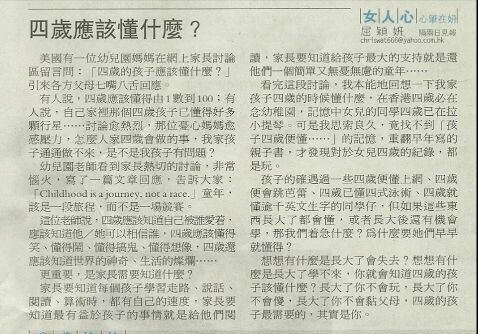 看著台灣的革命精神,覺得香港教育也到了「需要革命」的時候,要遏力宣揚,保護孩子們的童真。幼稚園的孩子,只要知道太陽是位老伯伯,不需要知道太陽是氫氦燃燒體,他們成長後總會知道的。