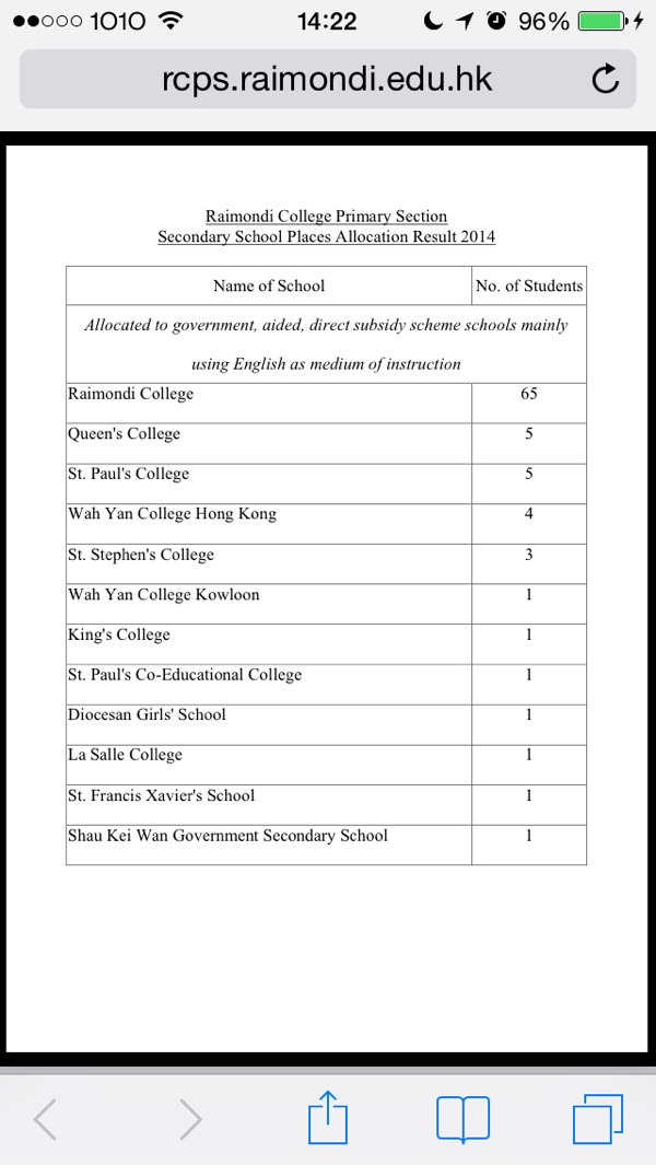 另外頭先我講高小小六係140人係大概計算,有機會少d,因為聽聞呢幾年都有人中途轉校。140人係我用往年小一嘅收生人數計算。呢個亦係網頁列出2013年嘅資料。