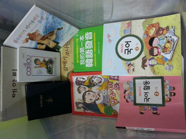 有圖畫書,有發音書,有韓國當地小學課本,有卡通DVD,有小說(最後的演講),有漫畫(大長今),一共300元。