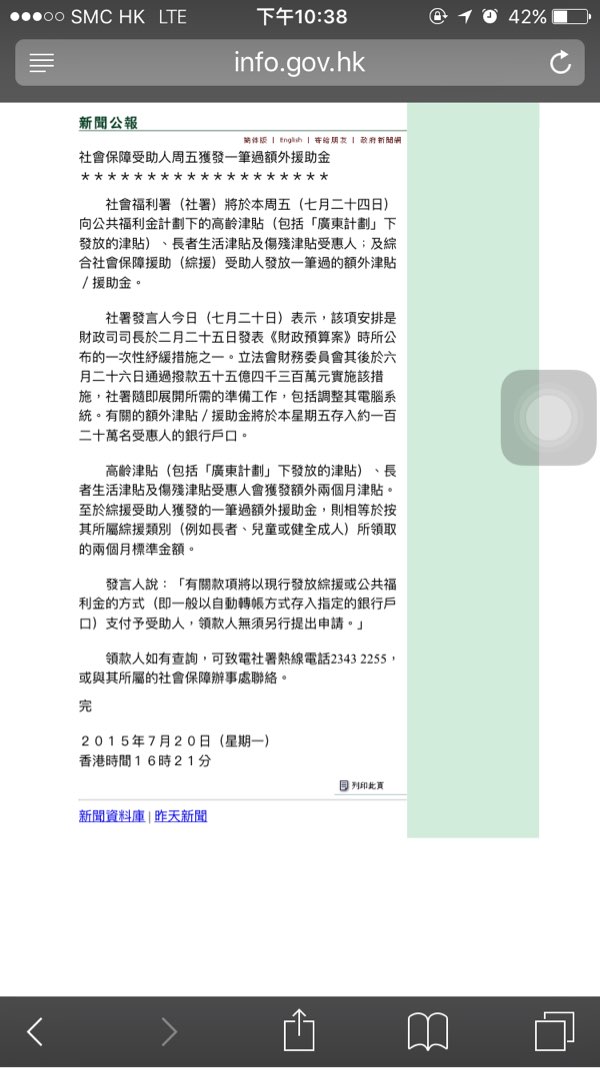 但之前政府批左話全部傷冿會有傷糧,我未收到,你地有人經已收到嗎?