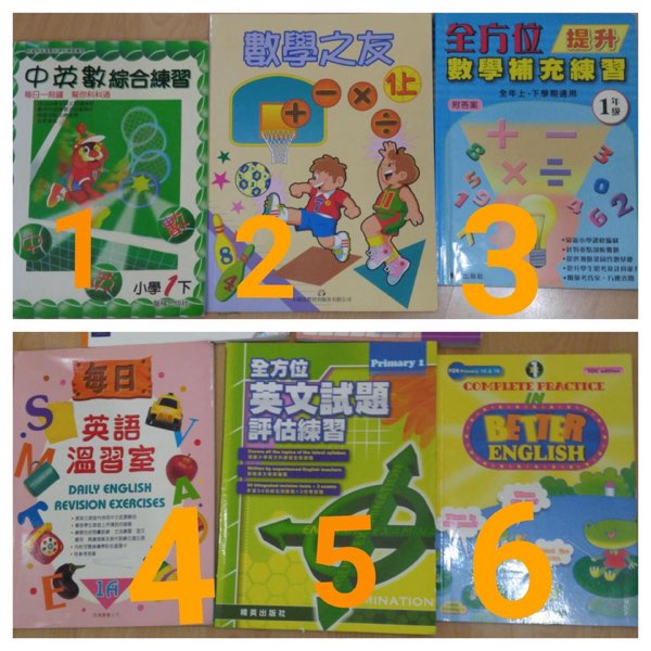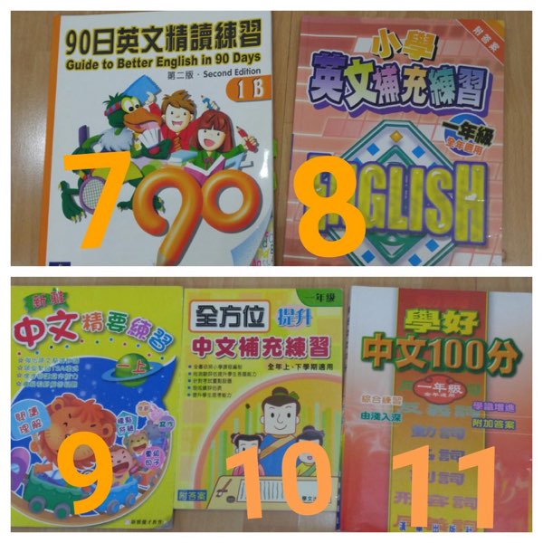小ㄧ補充, 中文, 英文, 數學。正常練習痕跡, 只用了少部份。可作為參考用途。