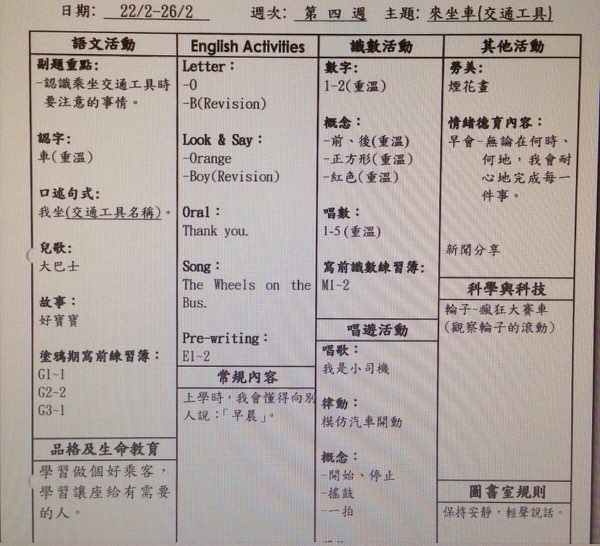 比如成個星期只學 O for orange, 數字只教5 ,教足一星期。會用不同形式教加深認識(講緊N 班下學期)