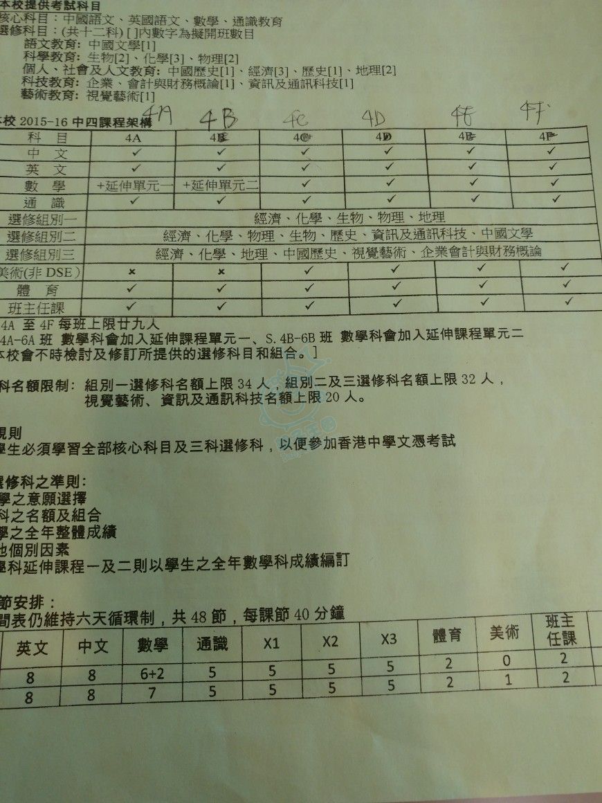 之前开放日d師兄话選讀理科不難,开的班同组合都多。仔暂时对中史同geog興趣不大,其他科都钟意,仲话想加埋音乐。