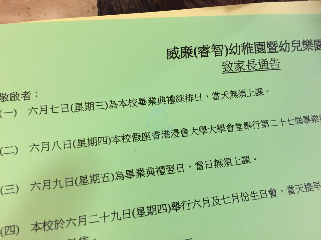 佢地老師綵排又叫人唔洗返,畢業禮之後又唔洗返,佢地好多呢D制做假期,次次連住放埋六日,星期一我們這些PN才能上學!關乜我們事,比了學費成日制長假,又次次聖誕/新年/乜乜長假都比其他周邊的幾間幼稚園放早起碼三四日!他們各方面還可,呢方面真心嬲!