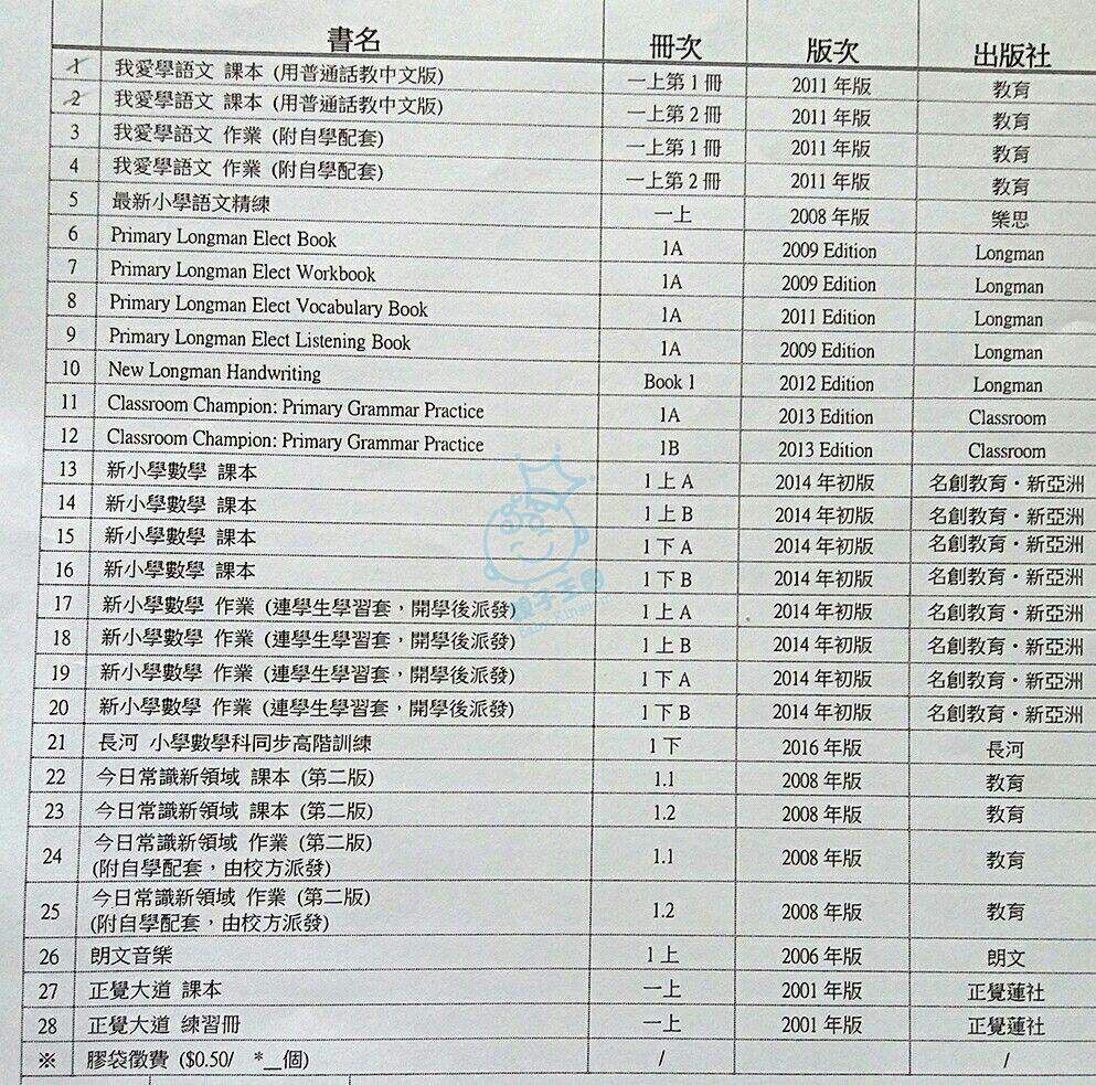標題: 二手小一數學課本 [打印本頁]