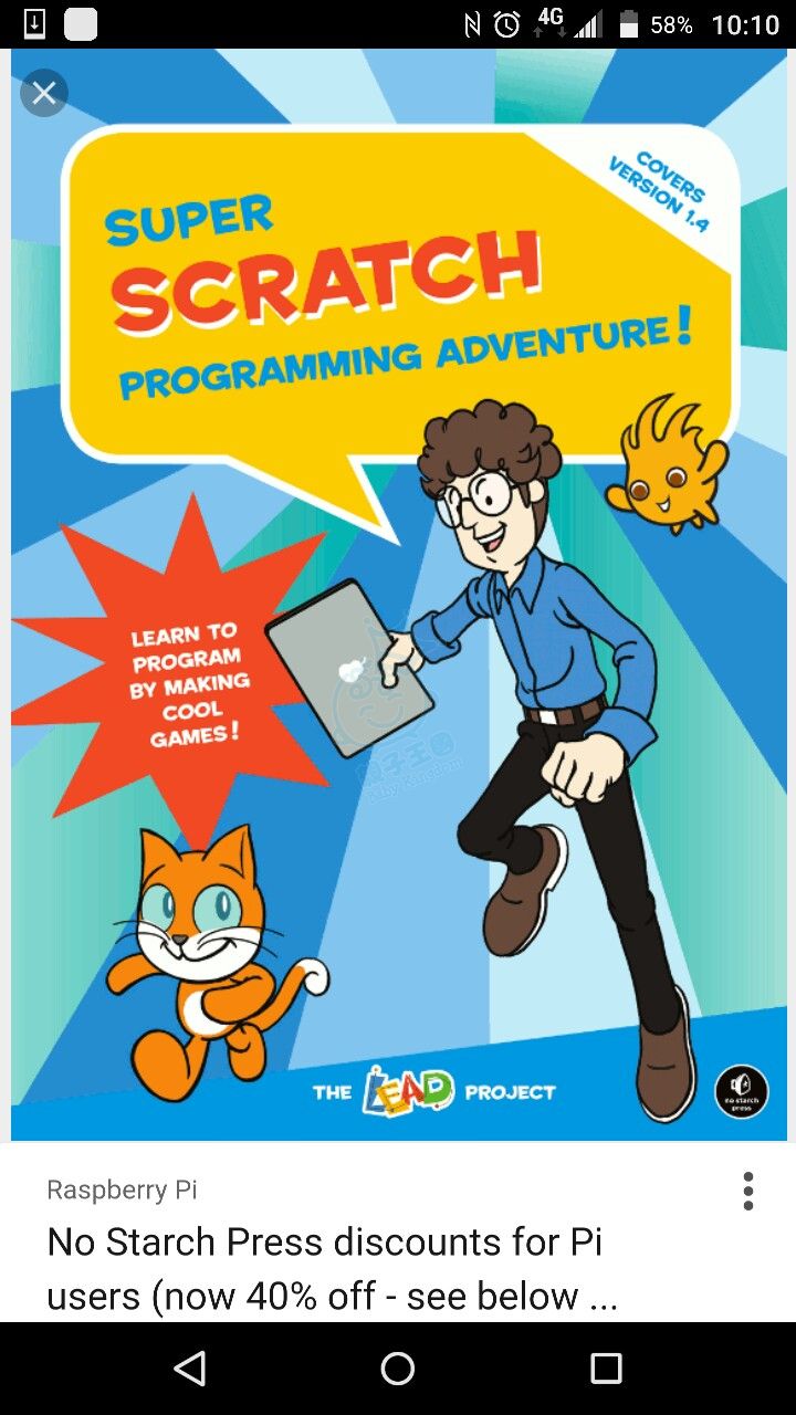 我個仔係自學SCRATCH, 我上Code Club print D course handout 比佢跟住學, 之後就買了呢本書比佢睇住學. 之後我有自學APP INVENTOR 教佢, 亦有去First Code Academy 學, 不過不是太值, 因教材是取材自網上免費教材, 現在他已開始學緊javascript 和 HTML, 因之前已學了兩年BLOCKY, 所以已掌握CODING alogritom 的基本理論, 現在學得很開心