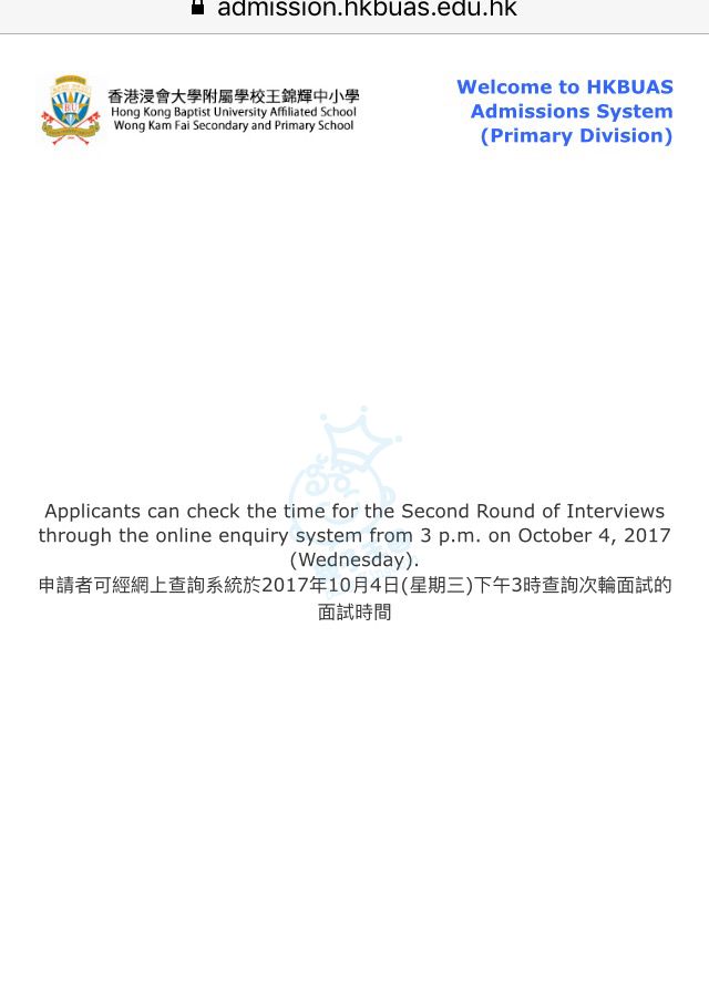 Applicants can check the time for the Second Round of Interviews through the online enquiry system from 3 p.m. on October 3, 2017 (Wednesday).