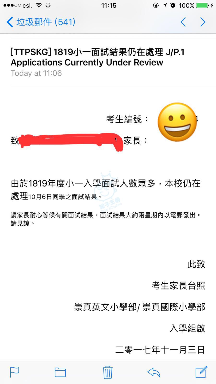 我22/9第一日考, 今星期原本係派彩, 但前天收到學校email話要過多兩星期先通知, 今日27/10有第二批小朋友面試, 學校應該係睇埋今日面試的表現才決定收邊個, 你地加油。