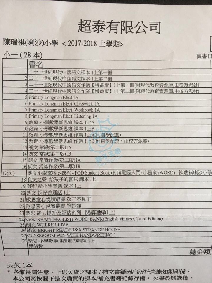 作者: pollymak 時間: 18-6-16 09:10 標題: 出讓全新陳瑞琪喇沙小一課本和男童校服