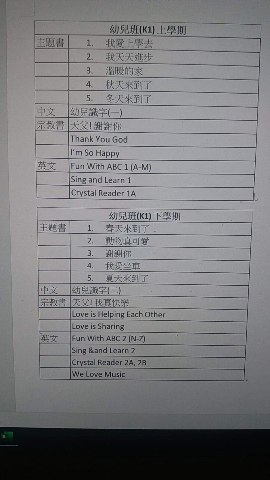 幼兒班K1