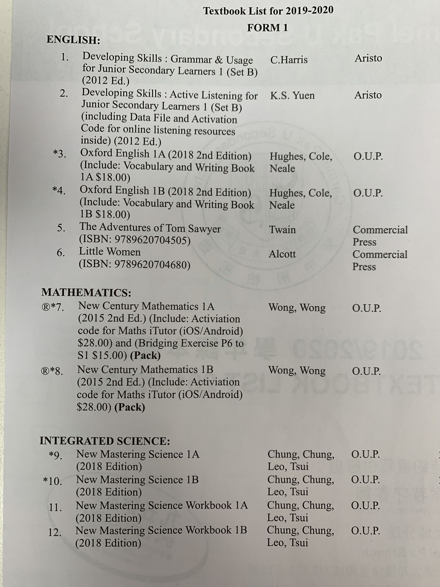 作者: Joan2004 時間: 19-7-15 19:41 標題: (誠徵)中一課本