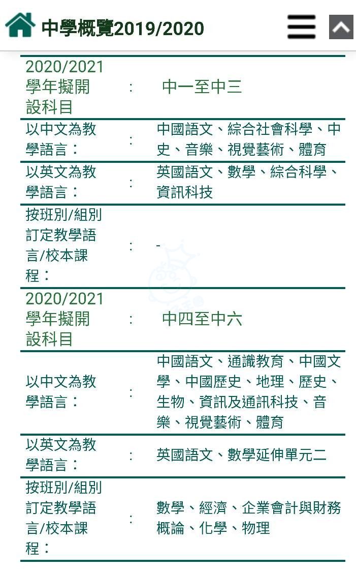 我問過學校,如學生有能力用英文教授,學校高中會繼續用英文教授!我亦問過點解初中無地理、歷史, 因為學校想加強學生中、英文,所以香島中、英文科上堂時數係比較多!