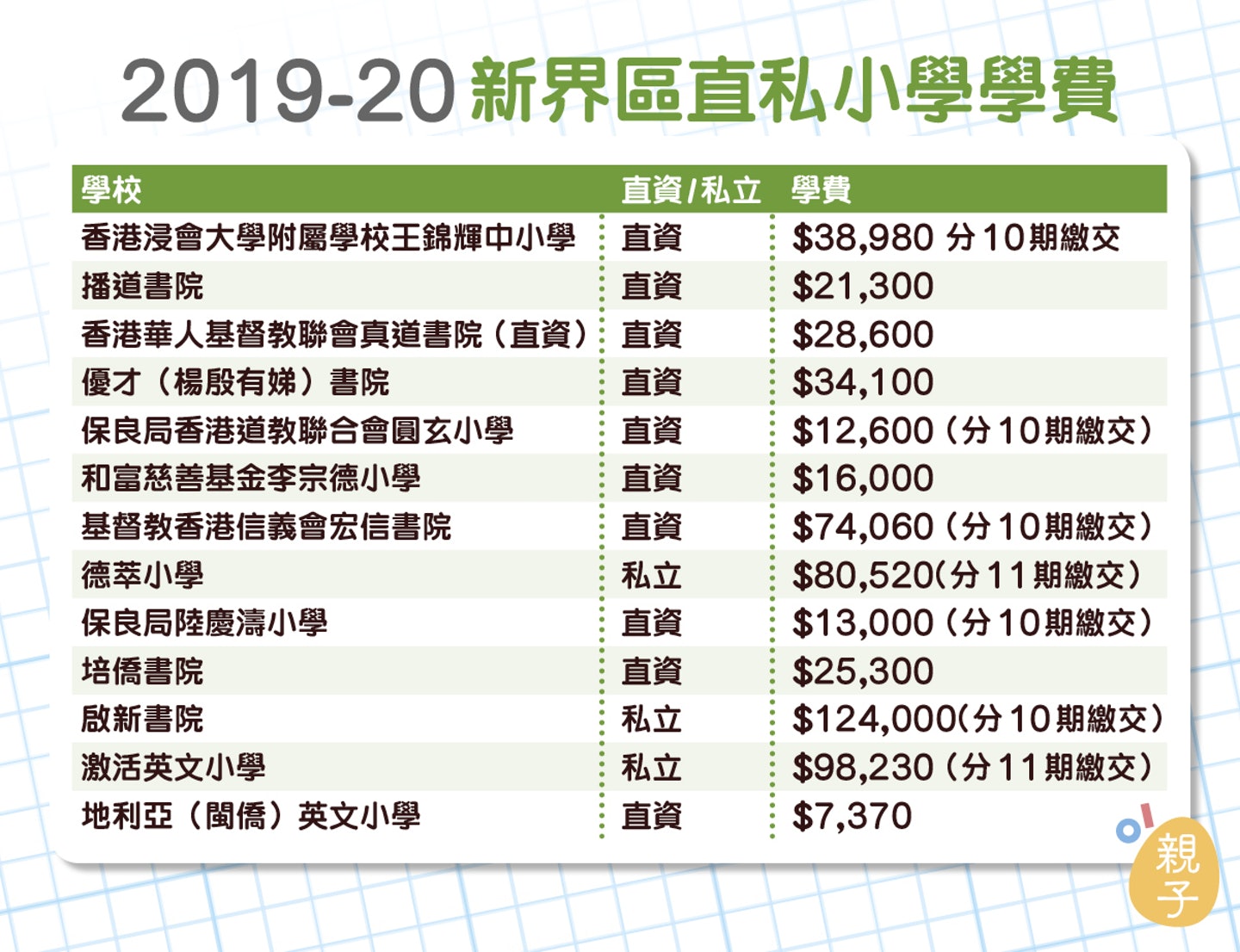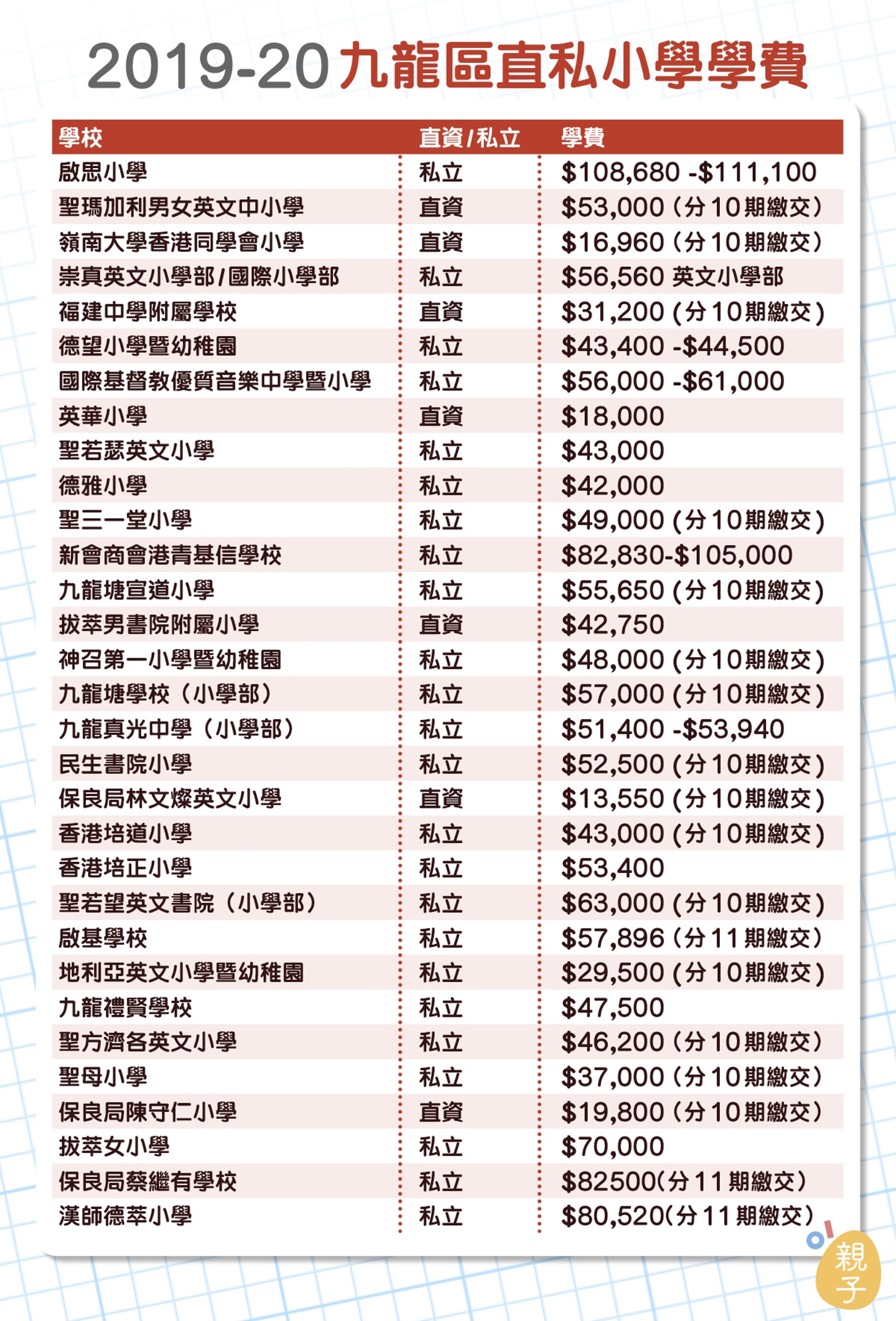 https://www.hk01.com/親子/371354/小學概覽2019-全港直私小學學費表-男拔附小英華維持學費不變