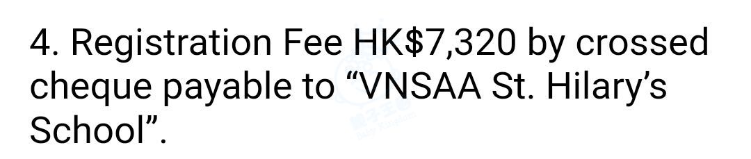 - Registration Fee HK$5000 by crossed cheque payable to “AOG St. Hilary’s College”. (Our annual tuition fee is $7320 monthly, with 11 installments, subject to the EDB’s approval.)
