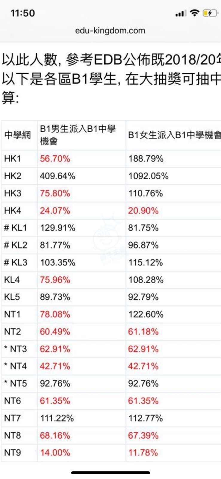 係91網有公布升中派位學校校之中