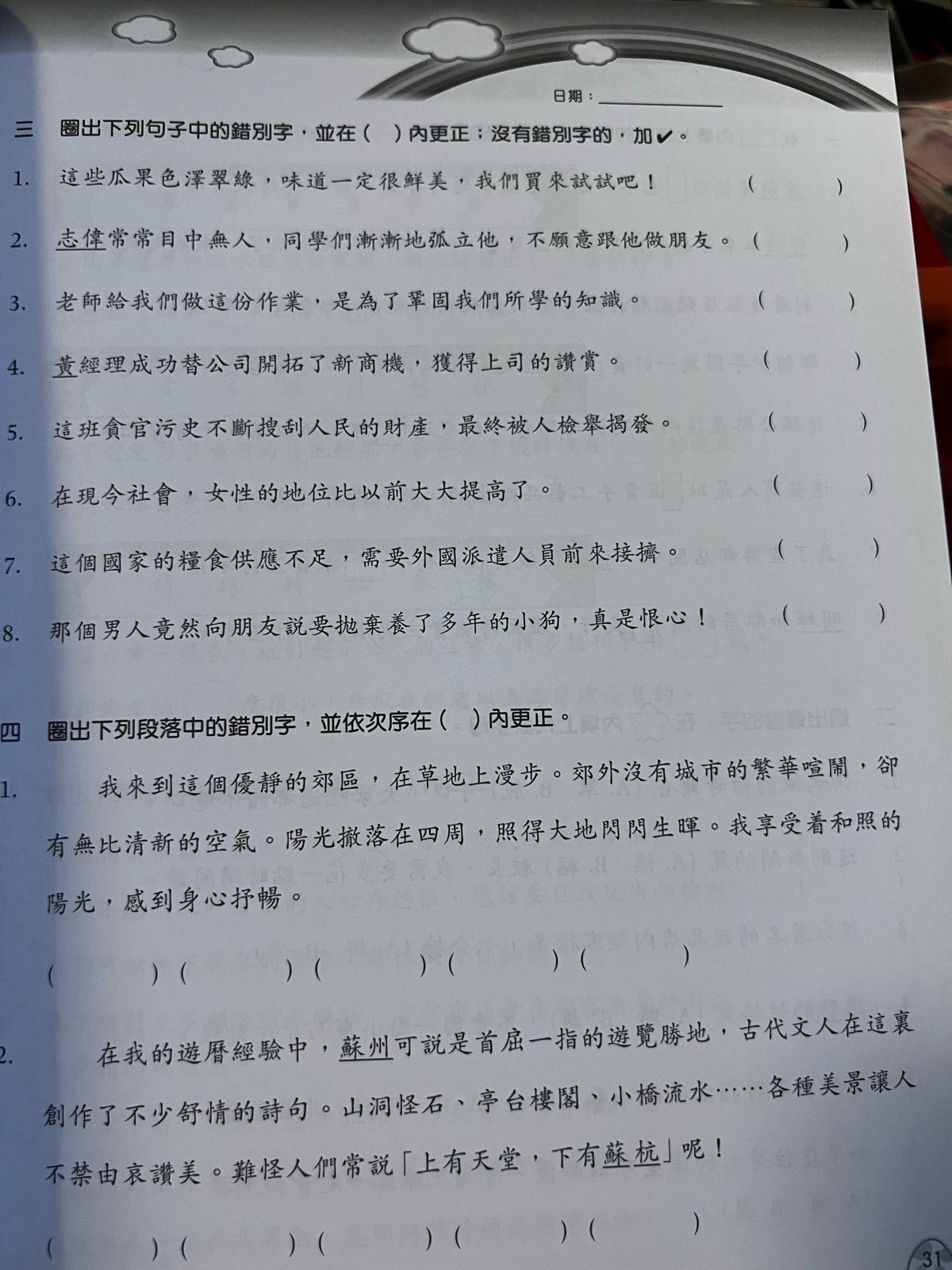 標題: 全新☘️中文練習☘️錯別字5️⃣ [打印本頁]