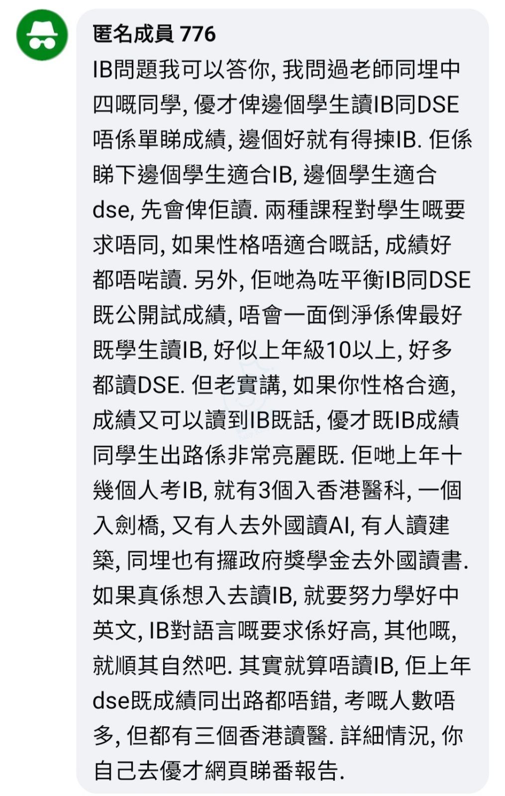 要讀IB,英文應該要達到一定的水平,否則比你讀都唔會讀得好,辛苦得黎成績亦不 ...