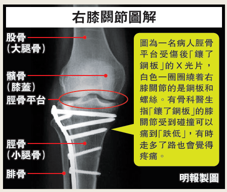 兩年前做手術 膝關節「鑲鋼板」