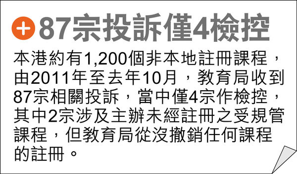 前年國力書院被揭涉偽造文件,令學生提早領取畢業文件。申訴專員公署公布調查報告,批評教育局對非本地課程監管有2大不足,包括無定期視察處所及無明確執法指引,申訴專員劉燕卿斥局方被動程度等同不作為,促教育局主動巡查及抽查學員文件。