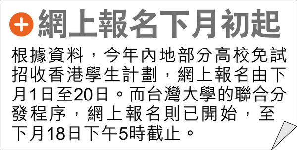 內地及台灣的大學收生程序即將展開,有調查發現,欲赴台升學的考生有26%,較去年下降7百分點。雖然考生對內地升學認知增加,但赴台意慾仍高於內地。機構解釋,跌幅與文憑試考生人數減少,本地升學機會增加有關。