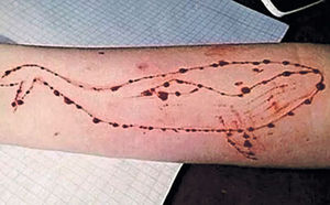 參與「藍鯨」遊戲的玩家須在手上刺出藍鯨圖案。(網上圖片)