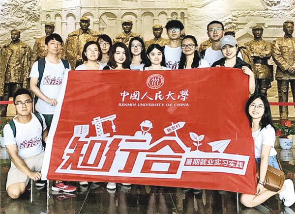 在中國人民大學讀書的香港學生林子淦(左一),上周獲得獎學金4000元。他說,申請獎學金時需要填寫成績、研究及實習紀錄等,毋須填寫擁護一國兩制的聲明。圖為林子淦與同學到貴州實習時參觀當地景點。