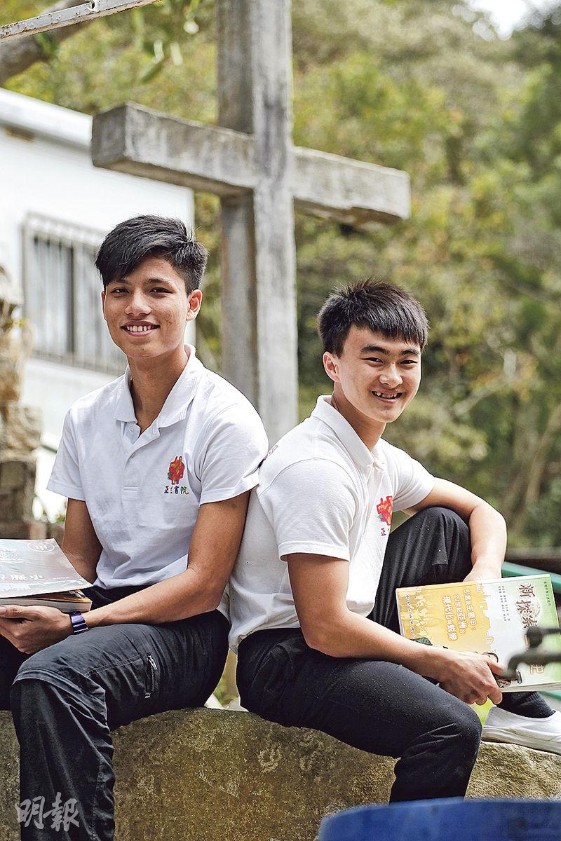 正生書院今年有10多名學生參加文憑試,程君恆(右)與李兆濤(左)在考前努力溫習,並互相交流備戰心得。