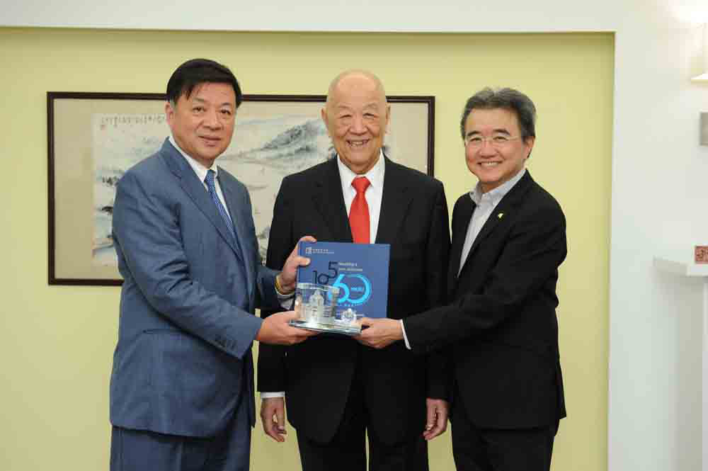香港浸會大學獲得陳守仁基金會捐資港幣100萬元,支持歷史系設立“陳守仁博士獎學金”,每年獎勵五名主修歷史的本科新生參與海外交流計劃。浸大昨天舉行支票致送儀式,(右起)浸大校長錢大康,陳守仁基金會主席及聯泰國際集團創辦人兼主席陳守仁、陳守仁基金會副主席及聯泰控股有限公司行政總裁陳亨利出席。